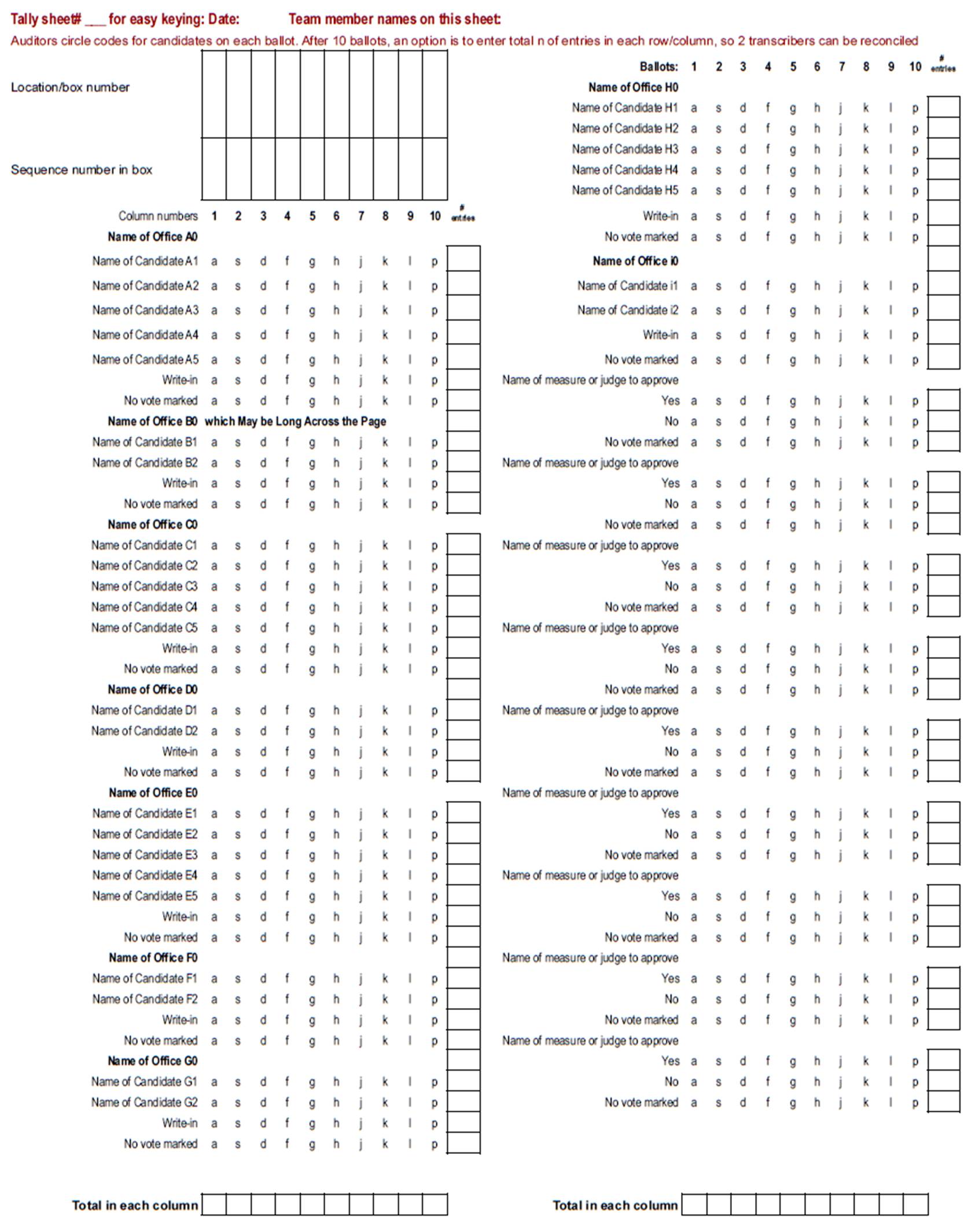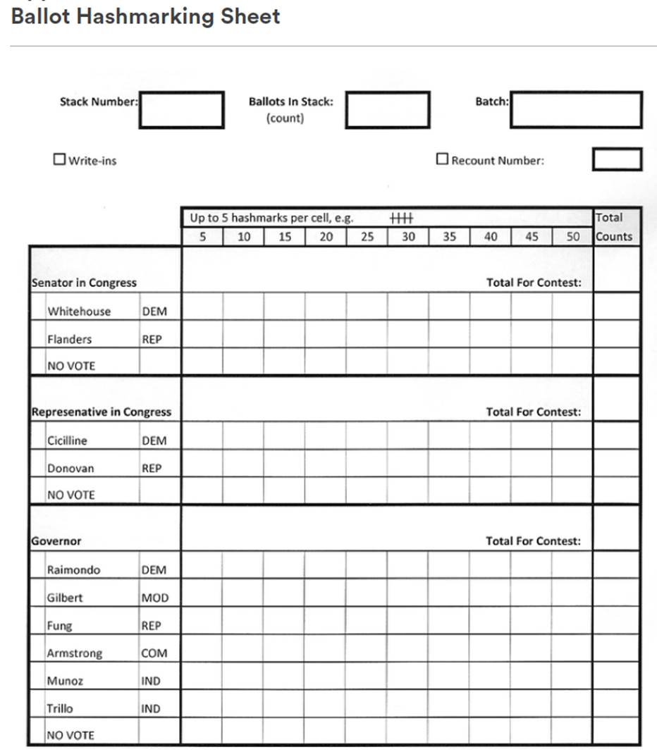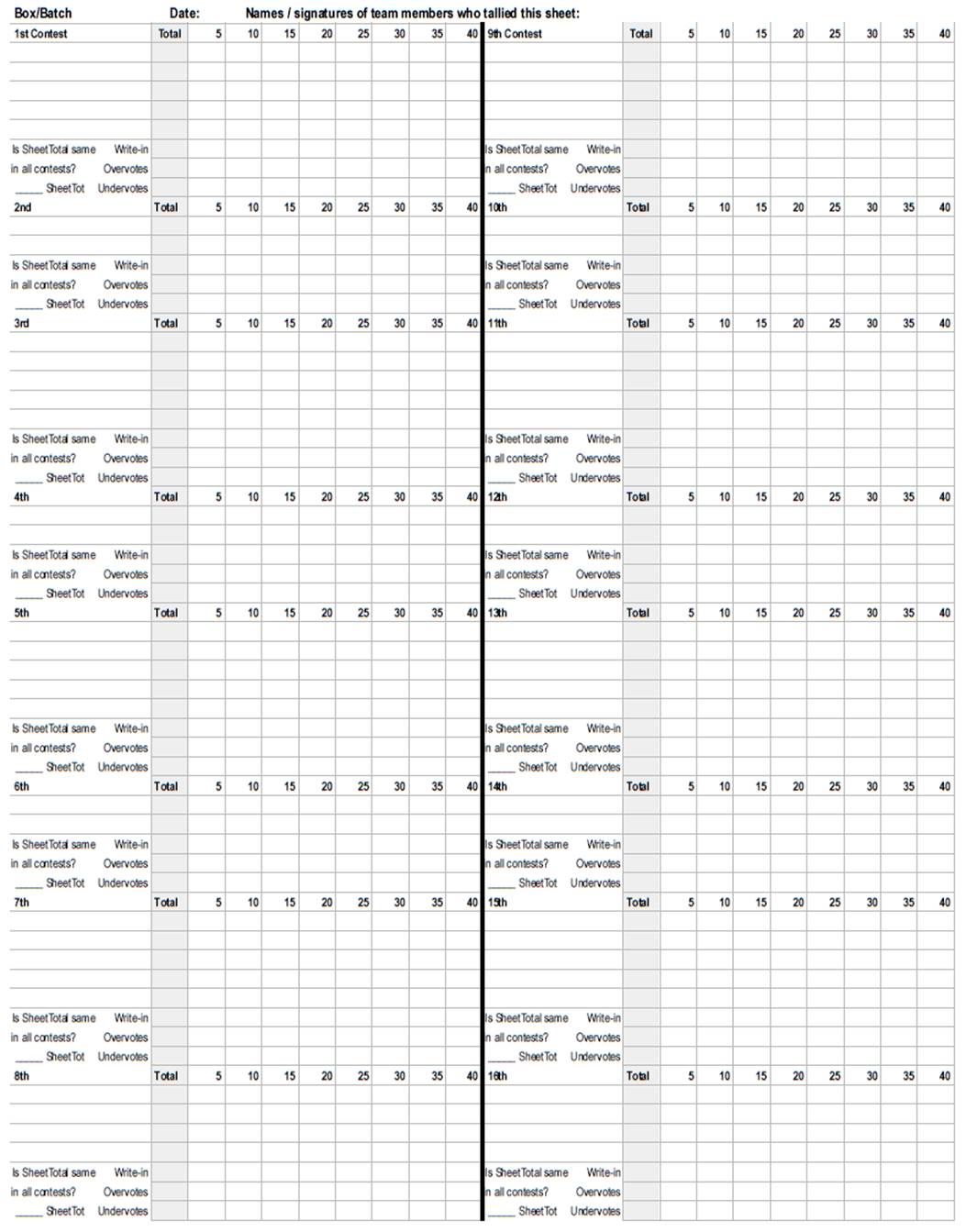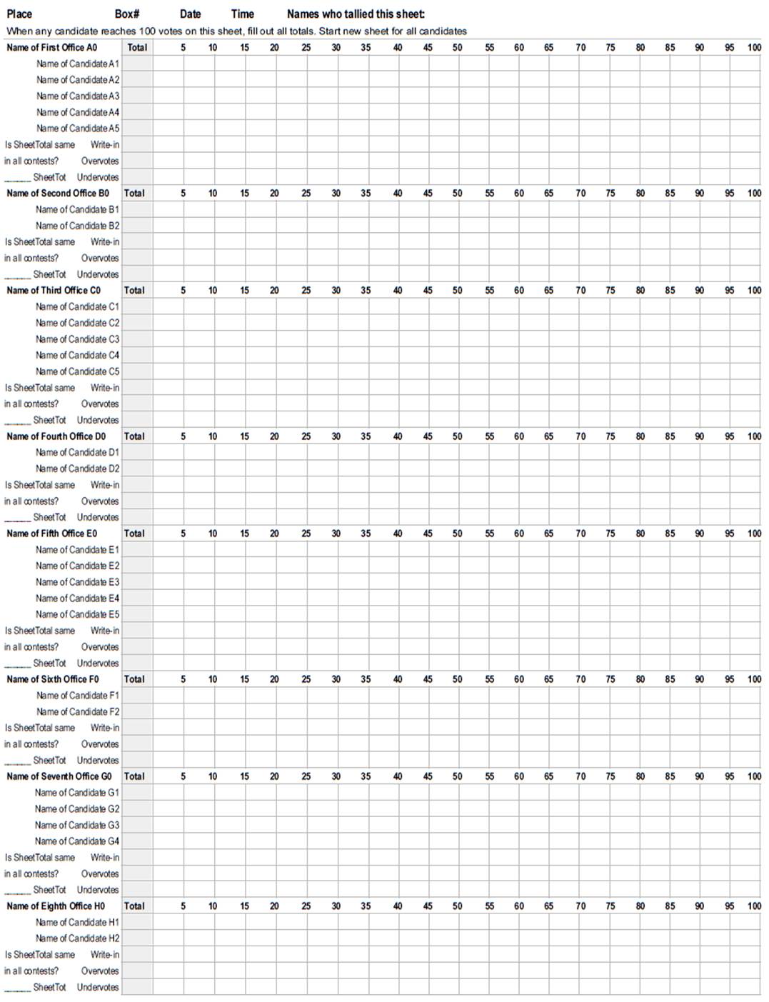 Election Tally Sheets, for Hand-Tallying Counts and Recounts