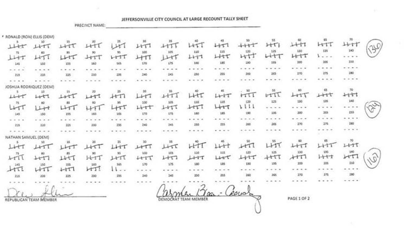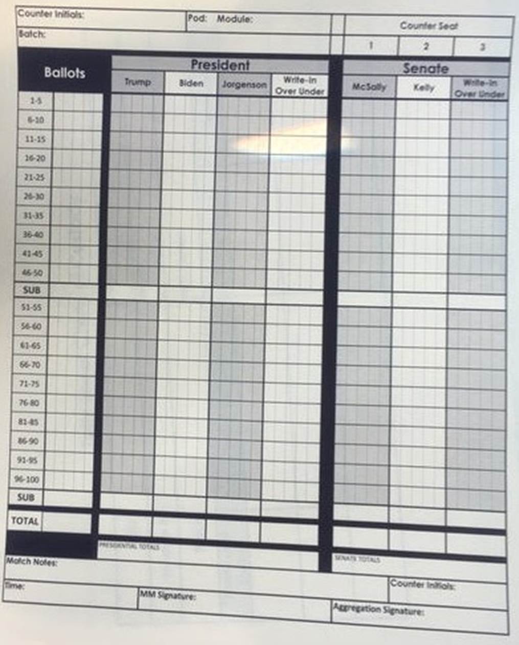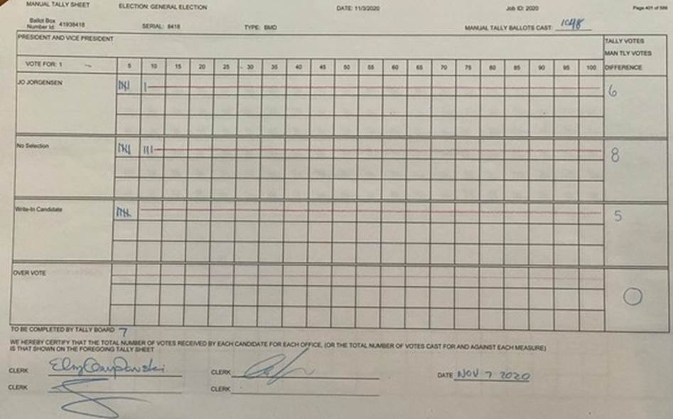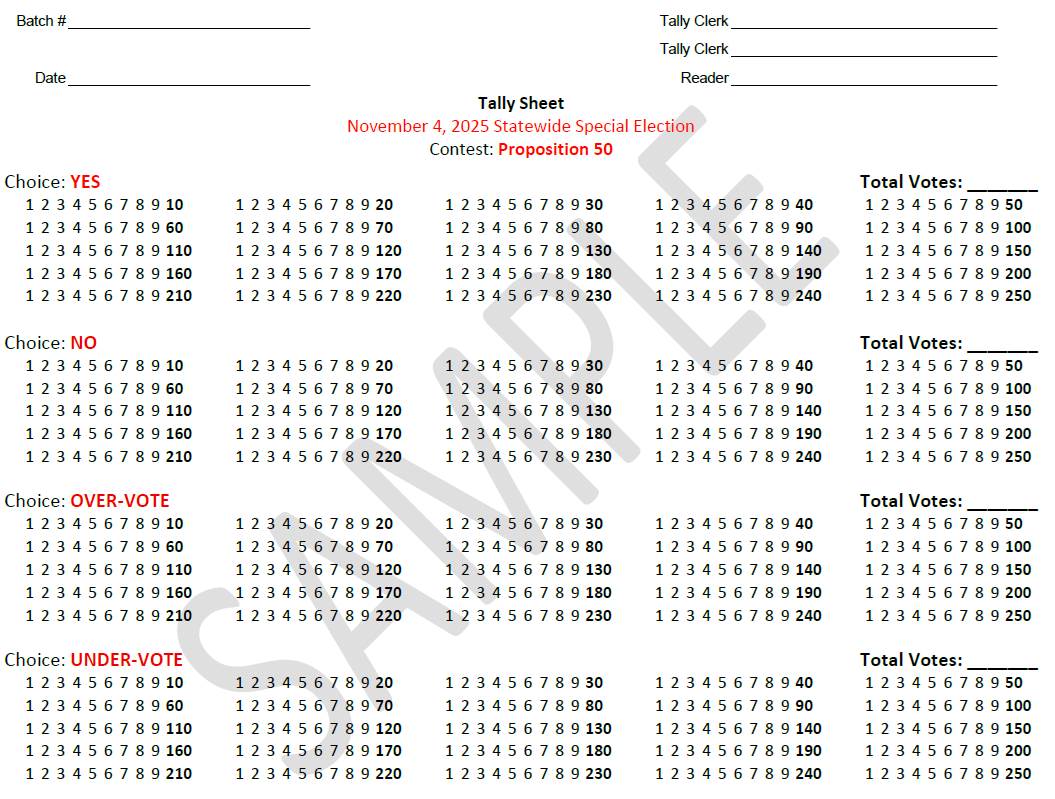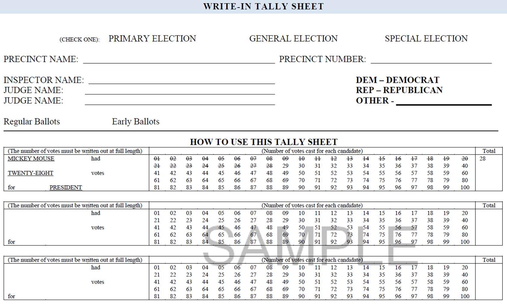 spaces for write-ins, overvotes, and undervotes. The image of the tally page