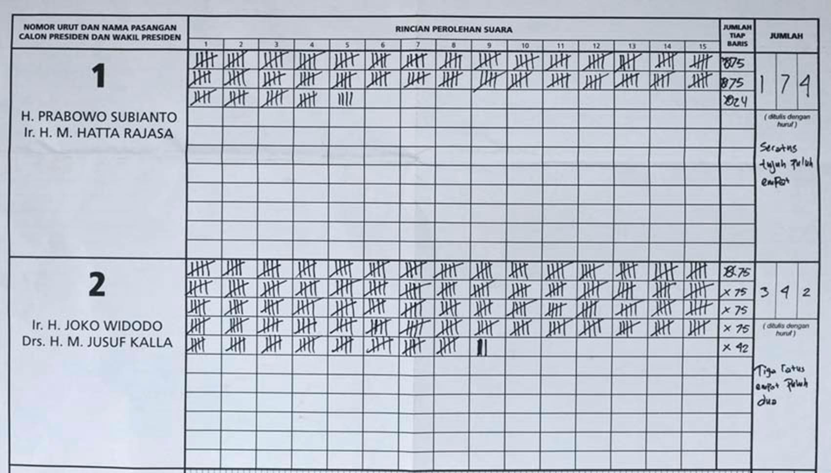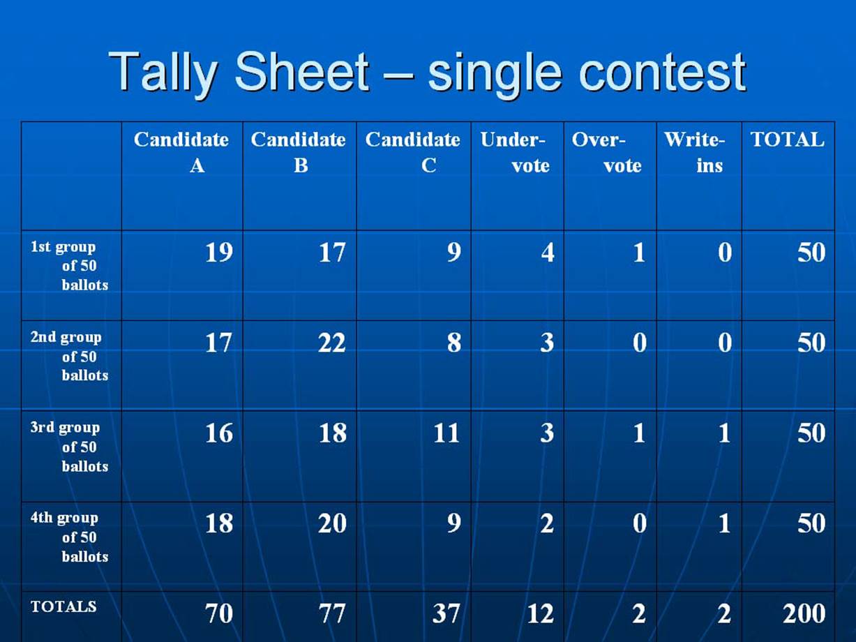 counter will place a single line (tally) in the Ballot column indicating that 1