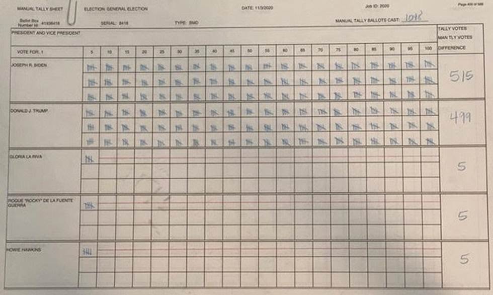 Georgia hand count in 2020 used "sort & stack" method, so they only kept totals for each batch. Goggin et al had found sort & stack less accurate than tally marks